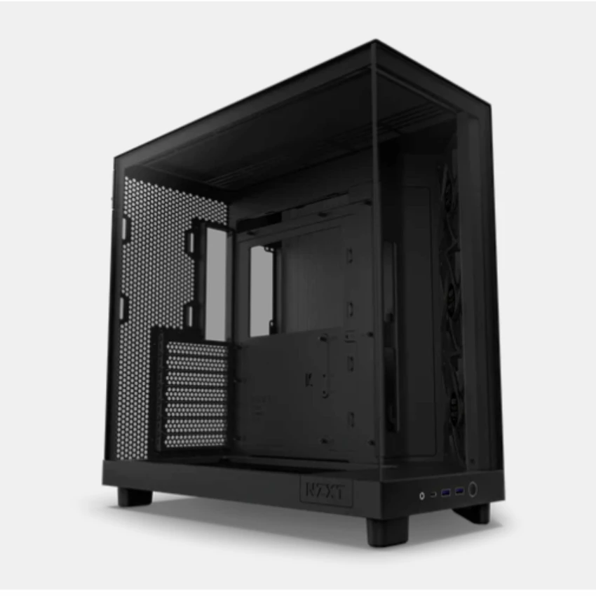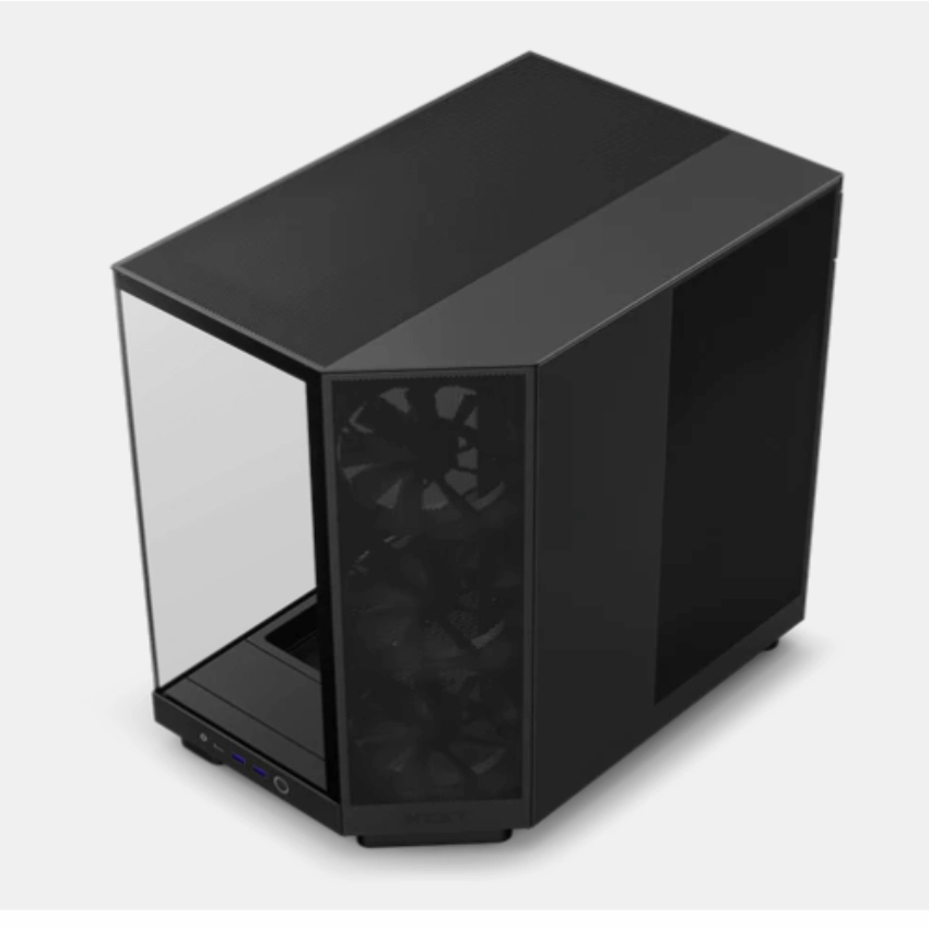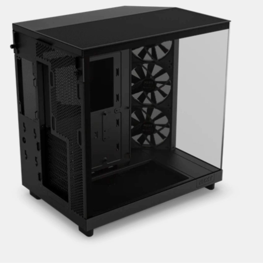 Case NZXT H6 FLOW ALL BLACK là vỏ case máy tính ấn tượng với thiết kế hai khoang (dual-chamber) sáng tạo, kết hợp giữa hiệu năng tản nhiệt đỉnh cao và vẻ ngoài gọn gàng. Hệ thống kính bao quanh với cạnh liền mạch tạo tầm nhìn toàn cảnh, giúp phô diễn trọn vẹn nội thất bên trong mà không bị cản trở bởi các khung viền truyền thống. Với mặt kính panoramic cùng phong cách tối giản đặc trưng của NZXT, chiếc case này mang đến vẻ ngoài cực kỳ hiện đại, phù hợp cho các bộ PC gaming hoặc workstation cao cấp.