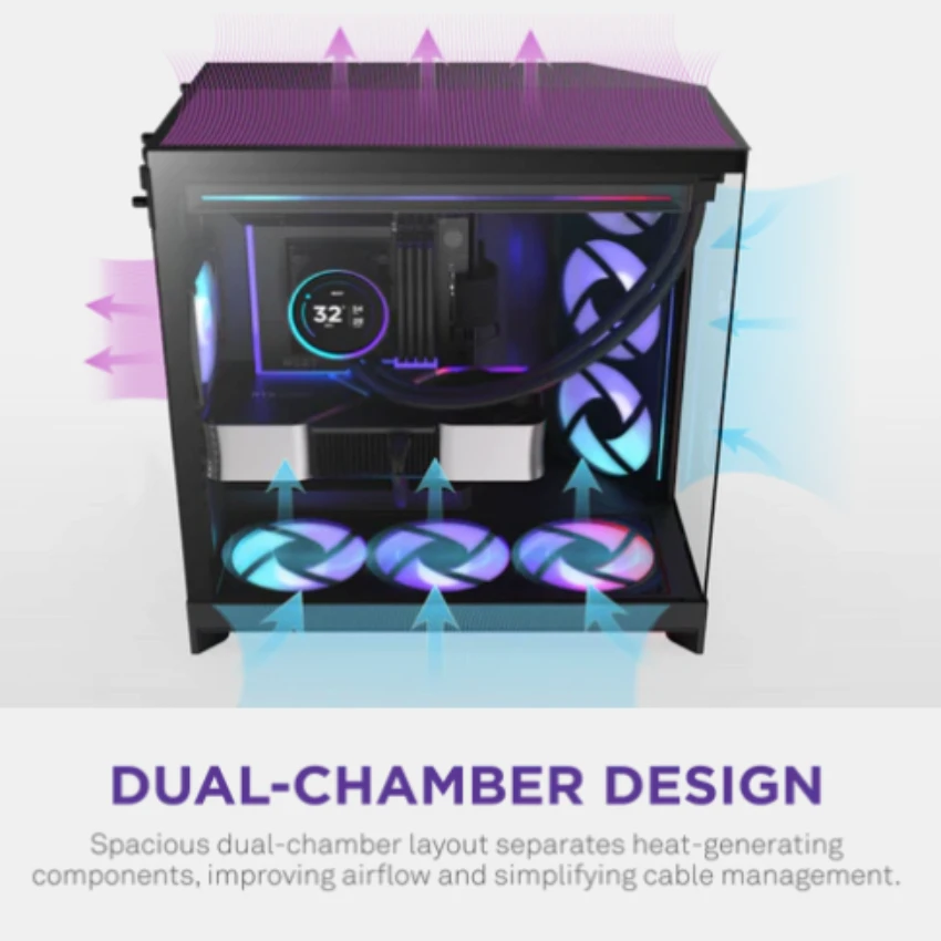 - Thiết kế hai khoang : Tách biệt các thành phần chính khỏi bộ nguồn và ổ đĩa để cải thiện hiệu suất tản nhiệt và quản lý dây cáp.