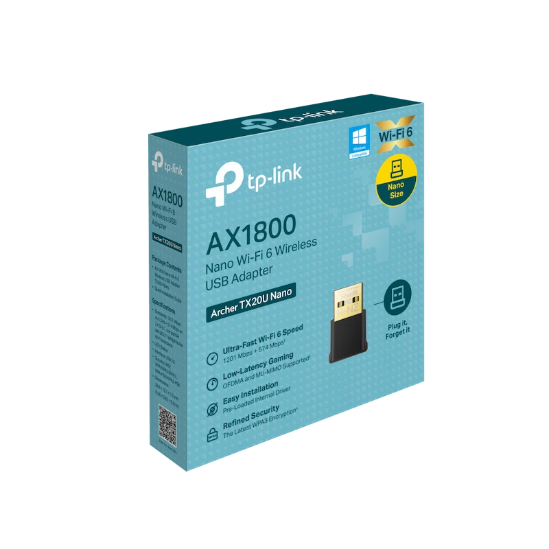 | Sản phẩm bao gồm | AX1800 Nano Wi-Fi 6 Wireless USB Adapter TX20U Nano, Quick Installation Guide |